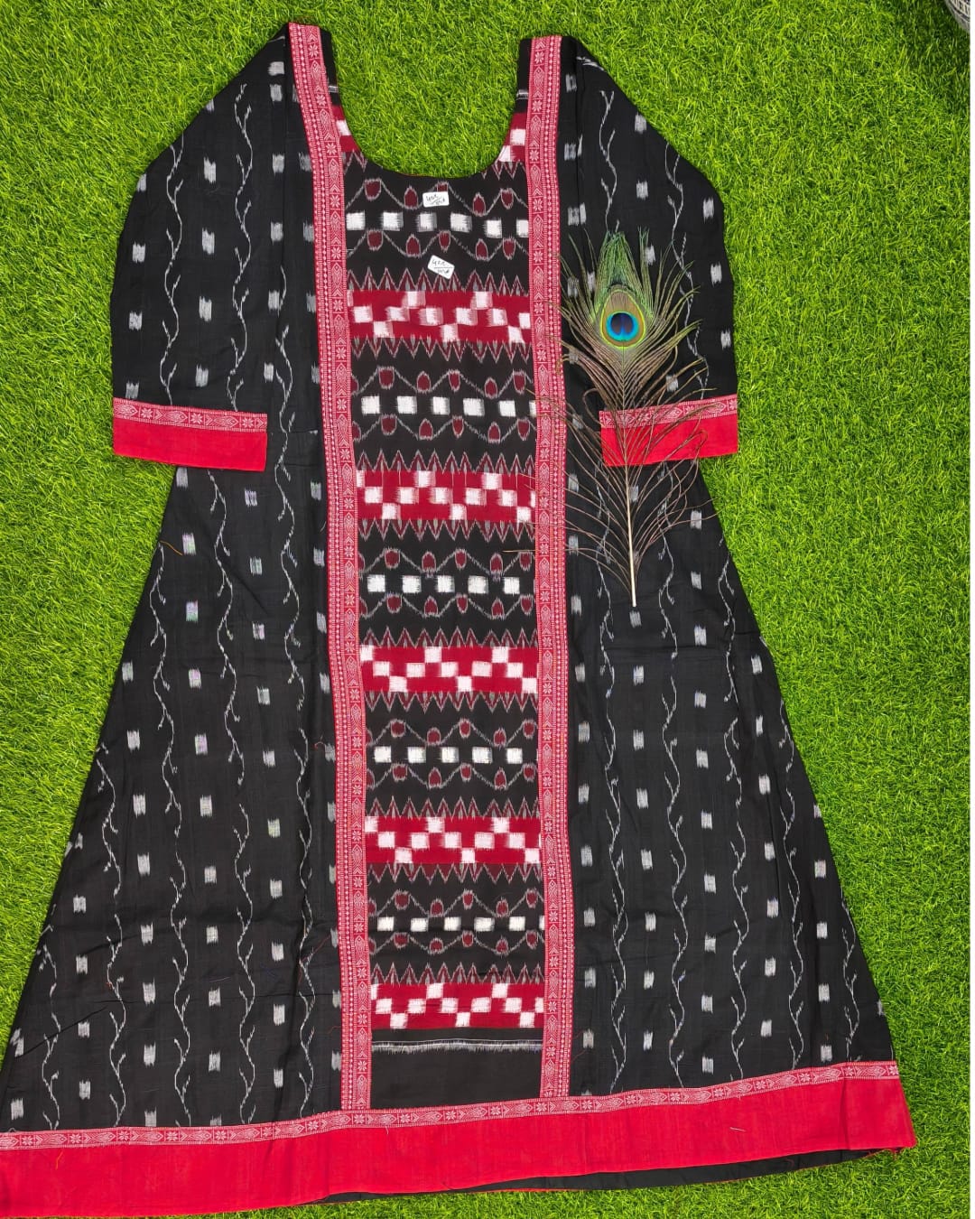 SAMBALPURI ANARKALI KURTI-BLACK